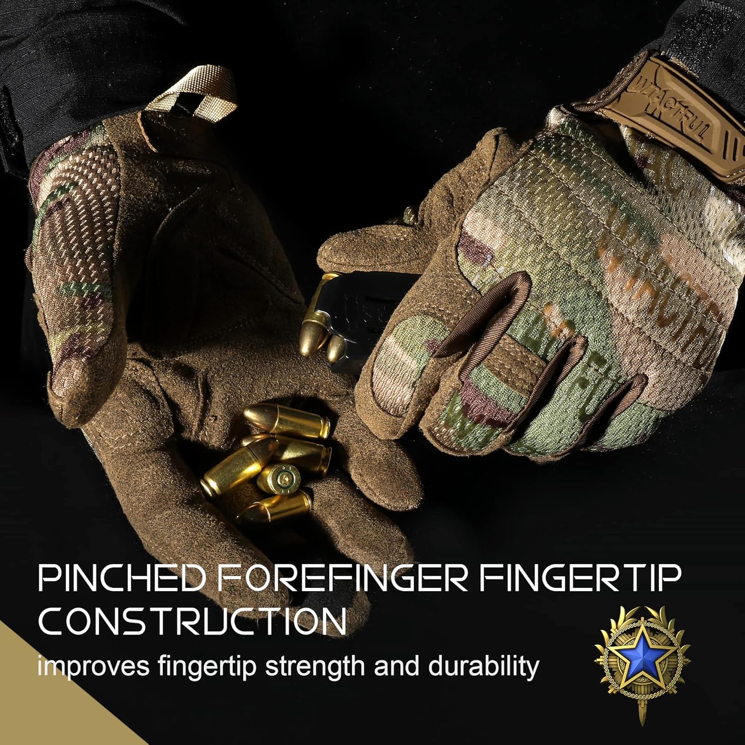 Durable tactical gloves with an anatomically designed one-piece palm, reinforced fingertip construction, and secure TPR closure. Ideal for airsoft, paintball, hunting, shooting sports, and heavy-duty work.
