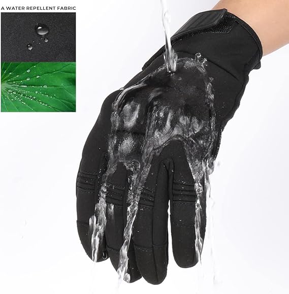 Windproof fleece-lined gloves with anti-slip microfiber palms, touchscreen thumb and index finger, and durable hook-and-loop cuffs. Ideal for cycling, motorcycling, hiking, and outdoor work in autumn or early winter.